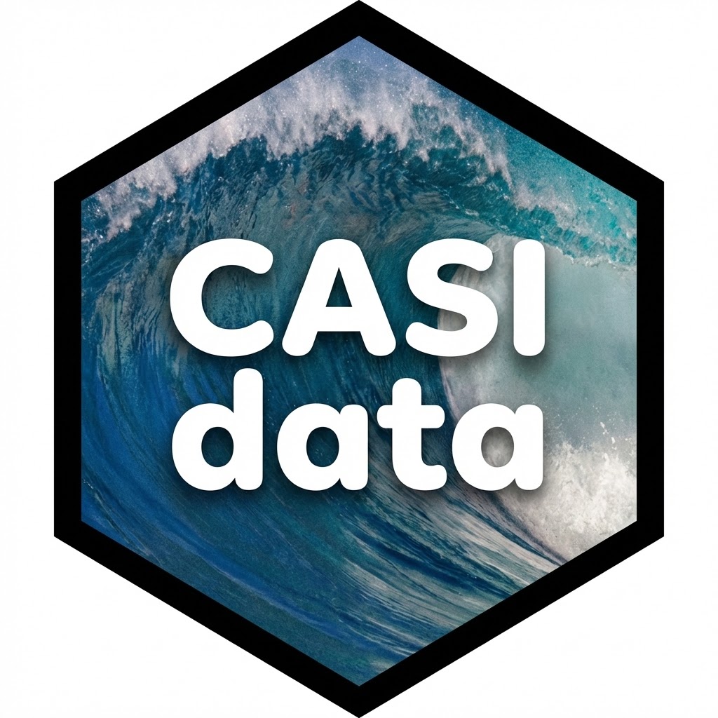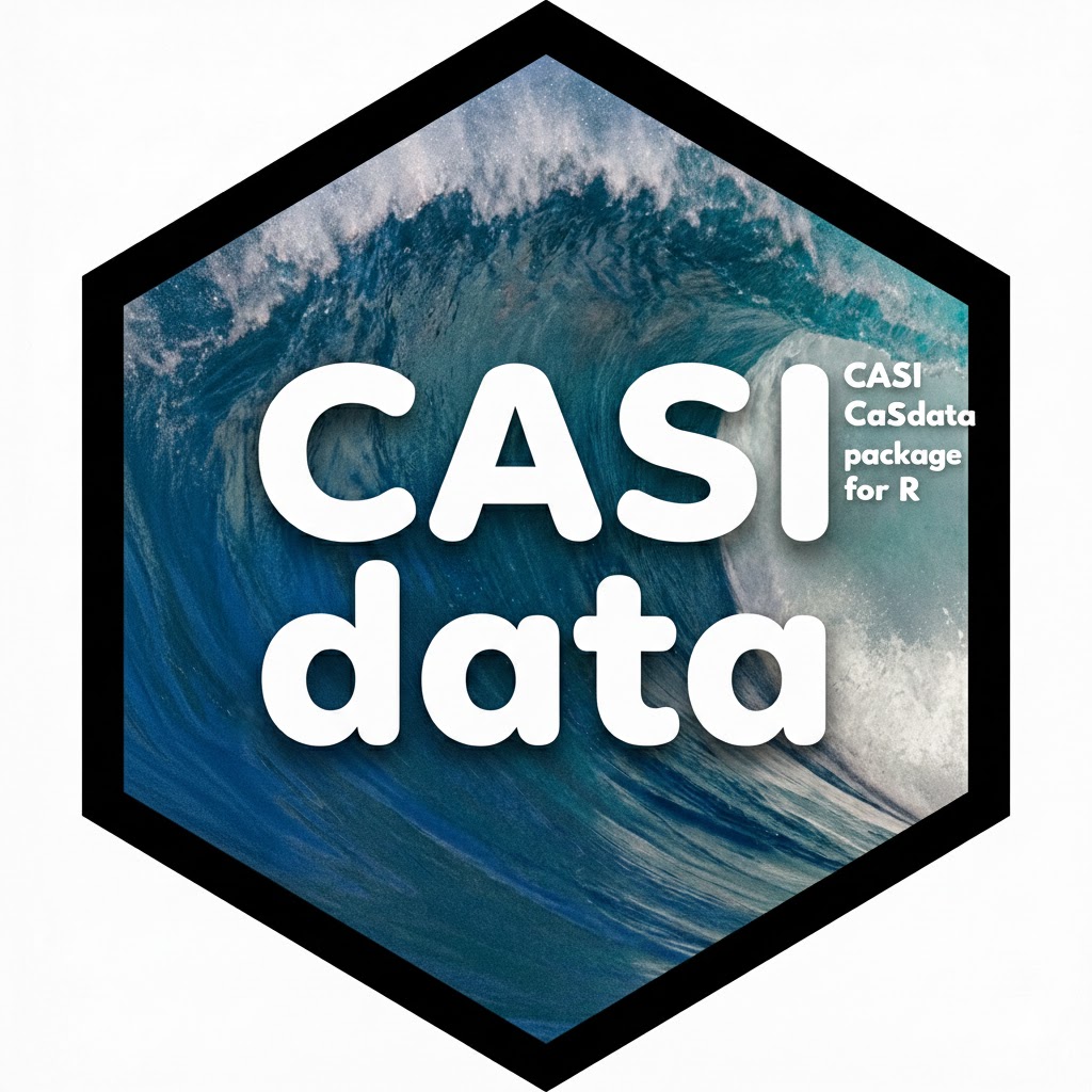 User: Now, can you make that into a hex logo for an R package called “CASI data”? The words CASI data should be large, on two lines, in a rounded sans serif font. Use the main part of the wave to fill the background. Make the border black, somewhat thick.