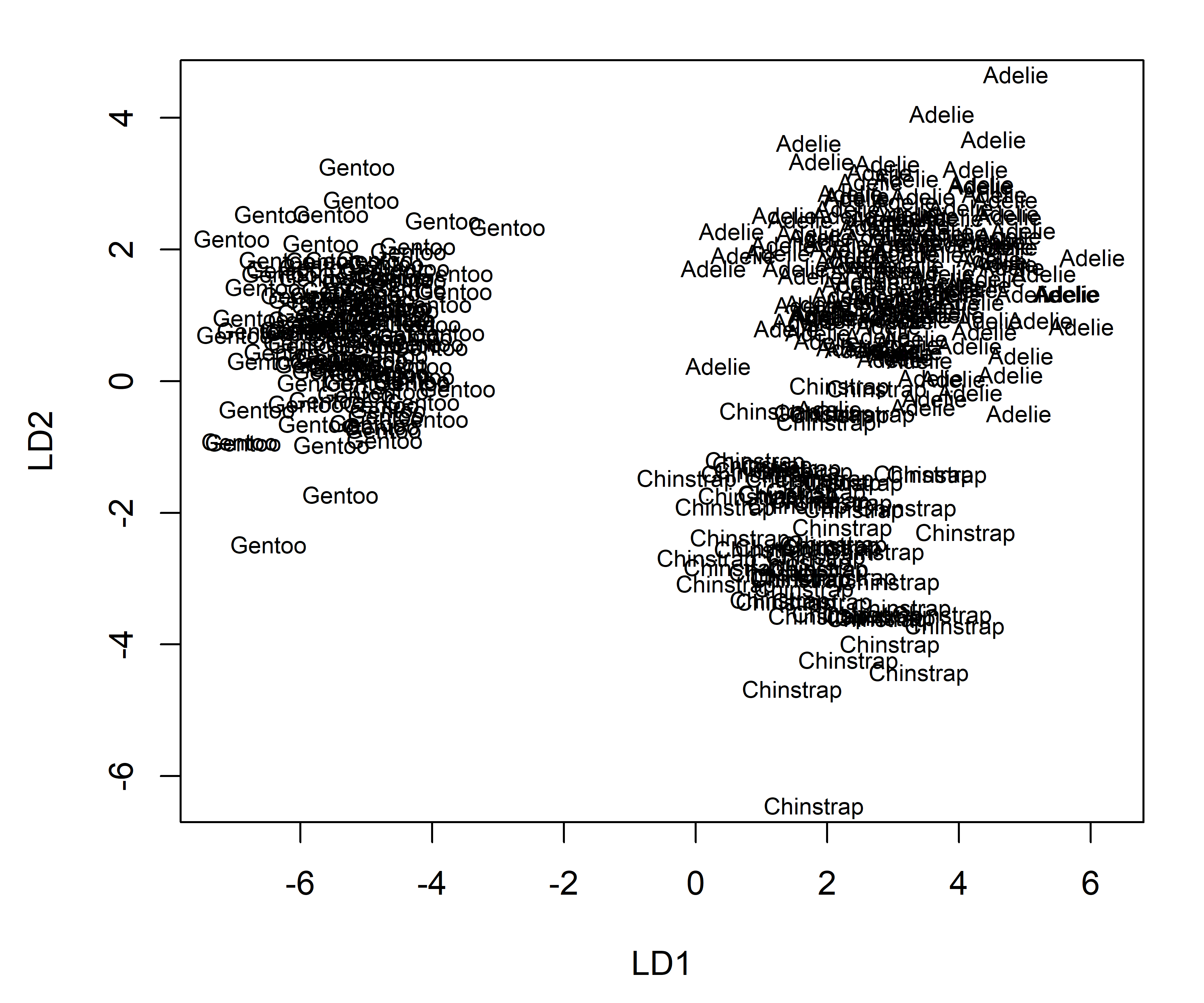peng.lda2 <- lda(species ~ LD1 + LD2, data=peng_scored)