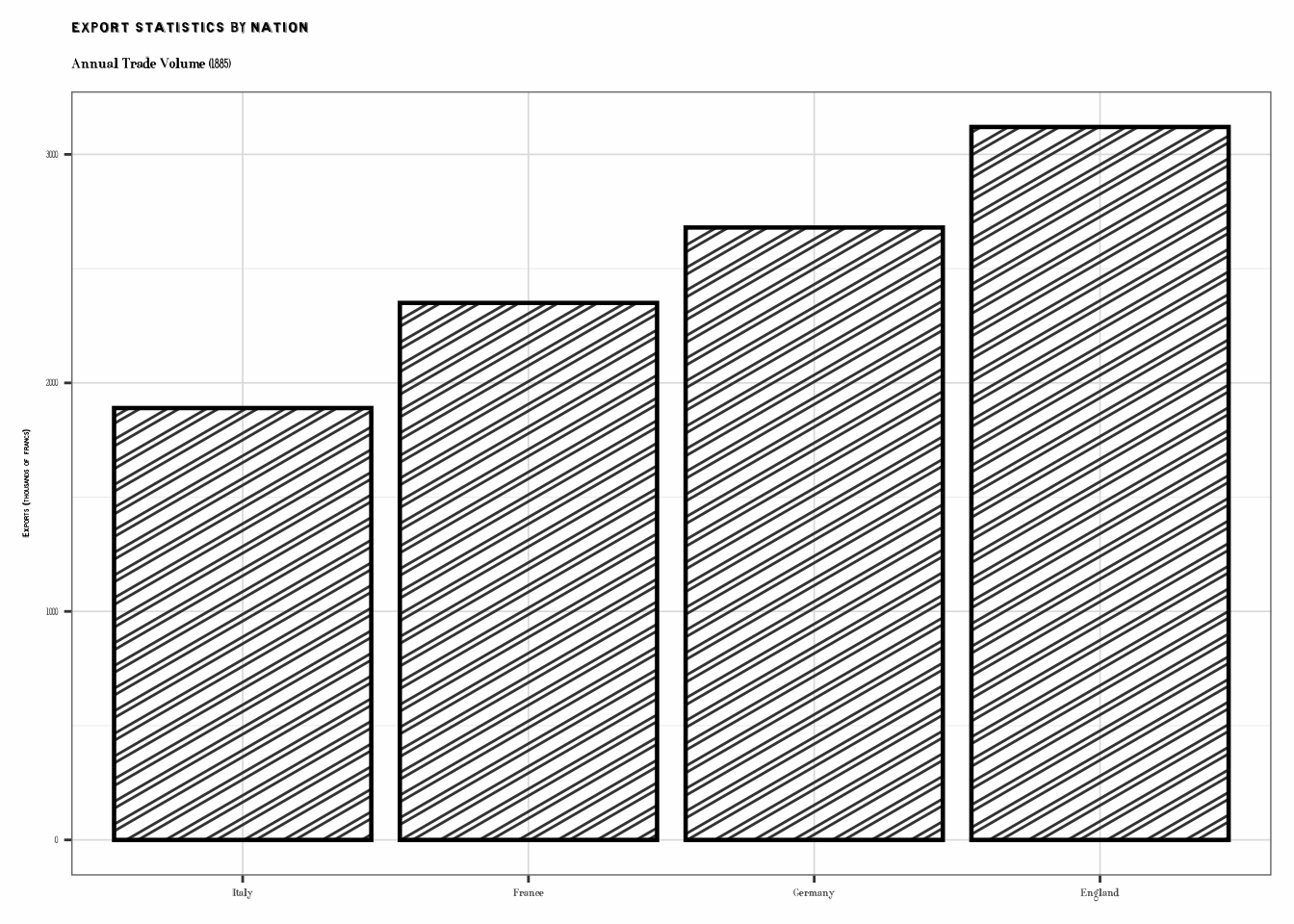 p4 <- ggplot(trade_data, aes(reorder(country, exports), exports, fill = country)) +