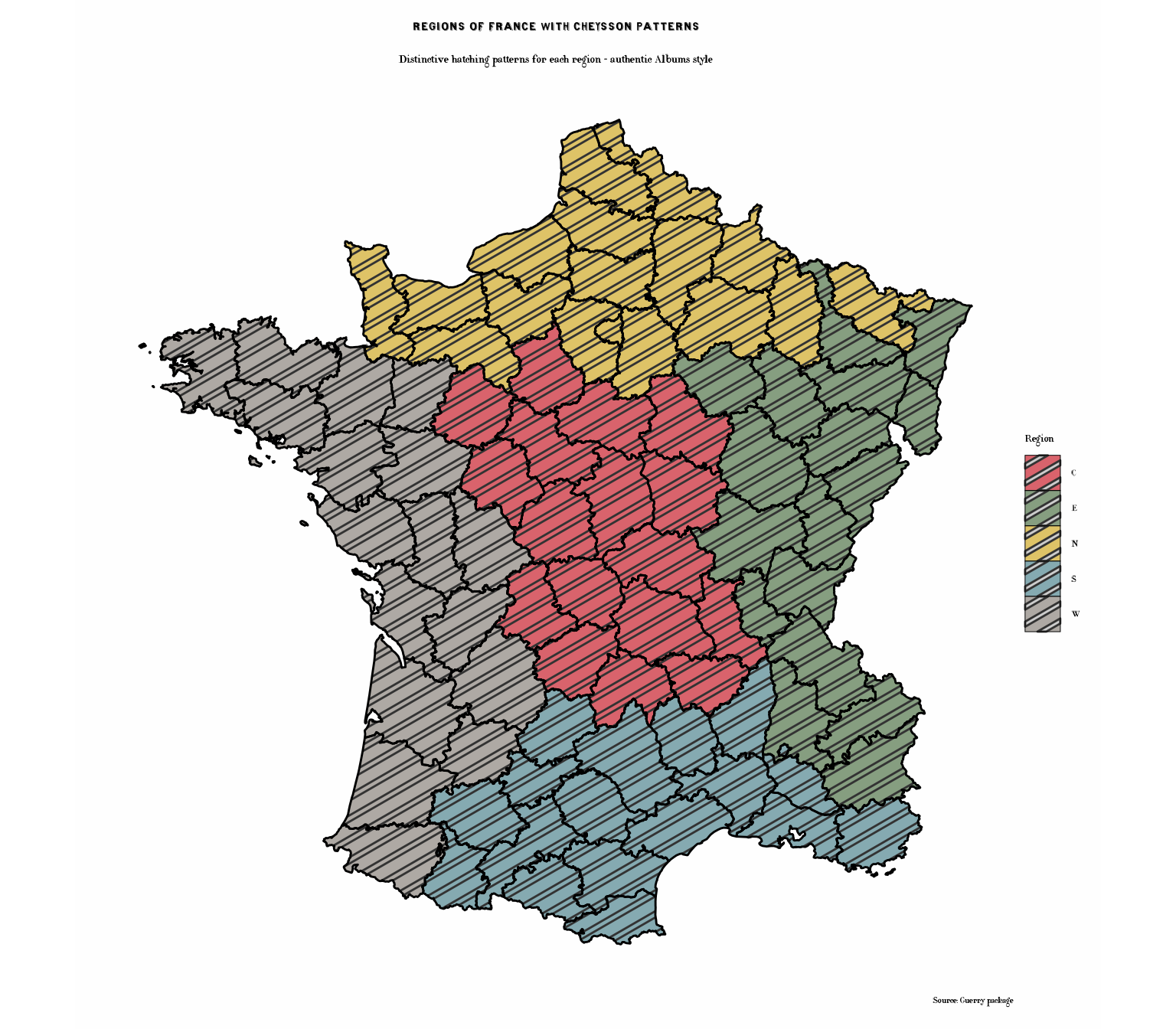 geom_sf_pattern()with pattern scales for authentic Cheysson cartography - Using
