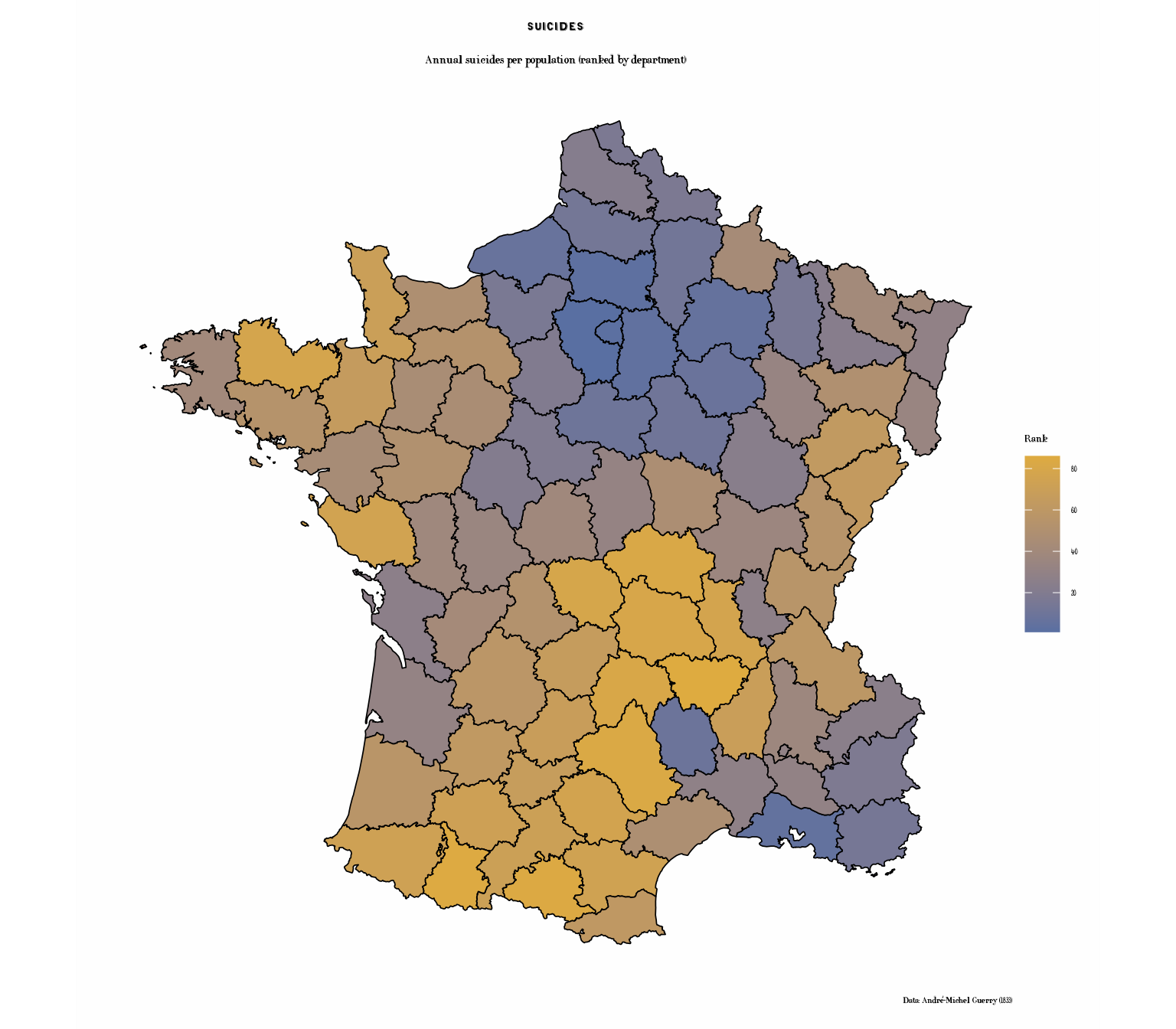 - Friendly, M. (2007). A.-M. Guerry’s Moral Statistics of France: Challenges for Multivariable Spatial Analysis. Statistical Science, 22(3), 368-399.